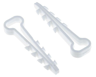 Вставной дюбель-хомут из белого полиамида для крепления кабеля на различных подложках, в том числе из газобетона.