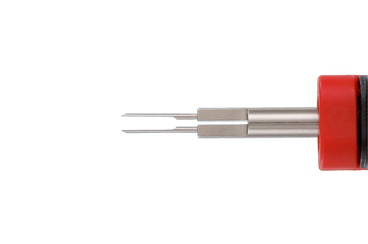 Экстрактор для неизолированных открытых наконечников с двумя симметрично расположенными фиксирующими язычками серий Micro Timer II, Micro Timer III, MFK/MFS; диаметр контактного стержня 1,6 мм.