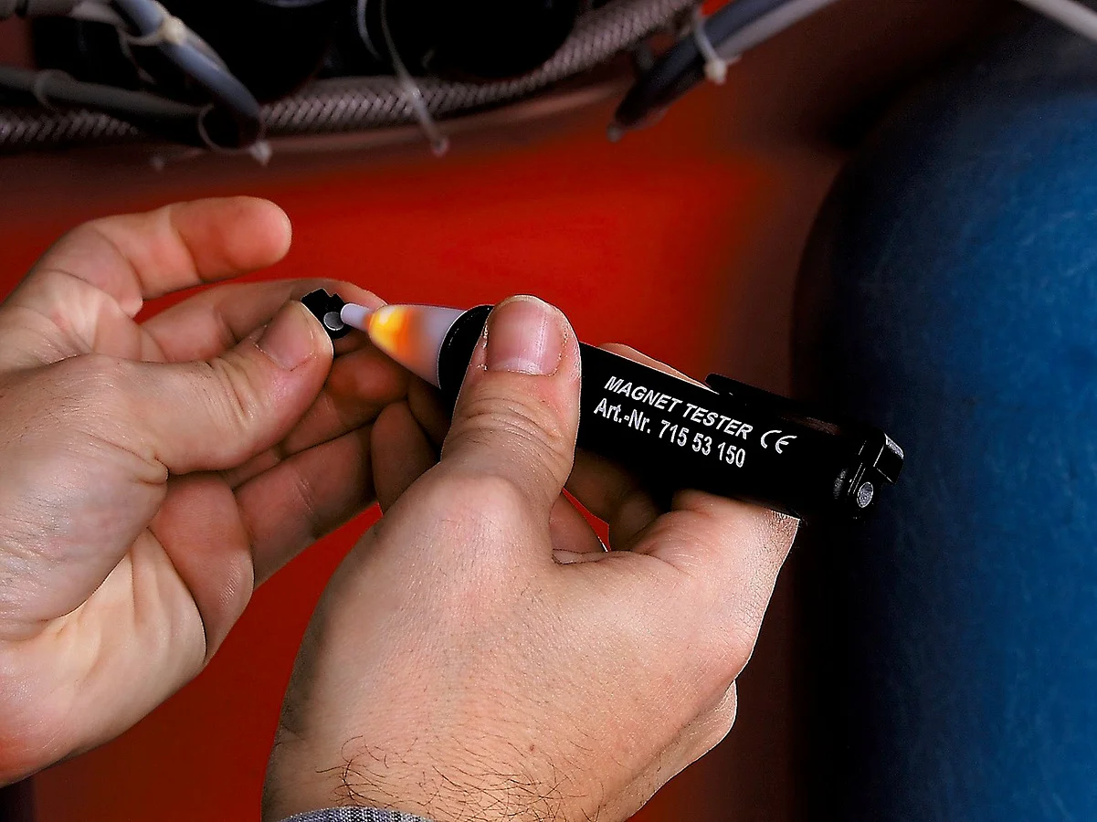 - Просто коснитесь компонента магнитным тестером - если лампа в контрольной точке загорается, компонент намагничен