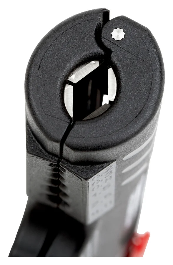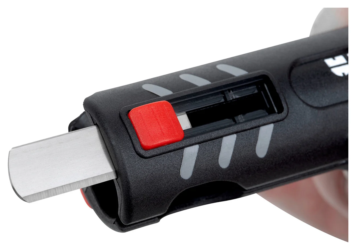 - Универсальный механический стриппер, оснащенный выдвижным ножом, предназначенный для снятия оболочки с круглых влагостойких кабелей, в том числе NYM, в диапазоне сечений от 3x1,5 мм² до 5x2,5 мм².