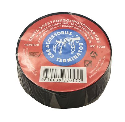 Изолента ПВХ IZ1920 19х0,16 мм, длина рулона 20 м, черная, Terminator