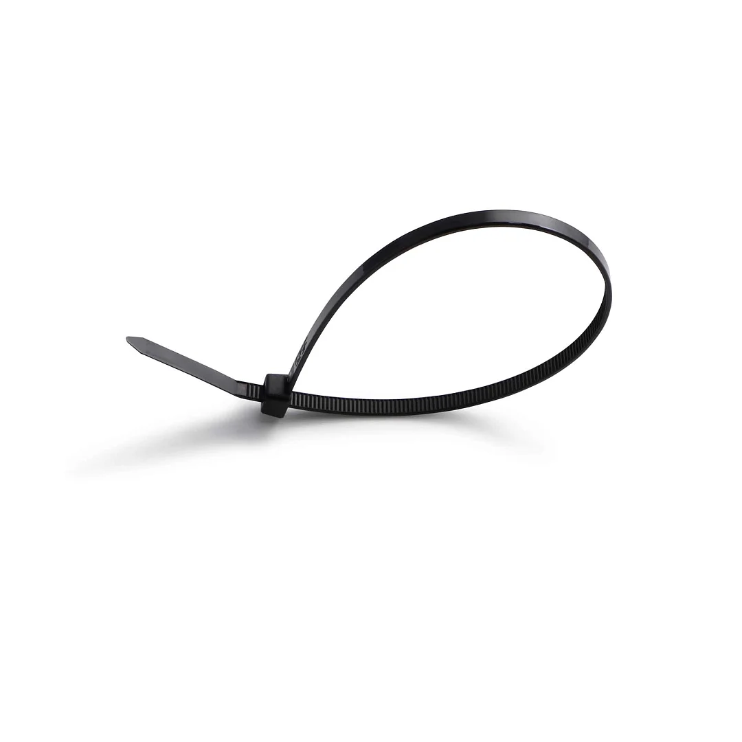 Нейлоновый хомут черного цвета предназначен для крепления кабеля и проведения других монтажных работ преимущественно на открытом воздухе.