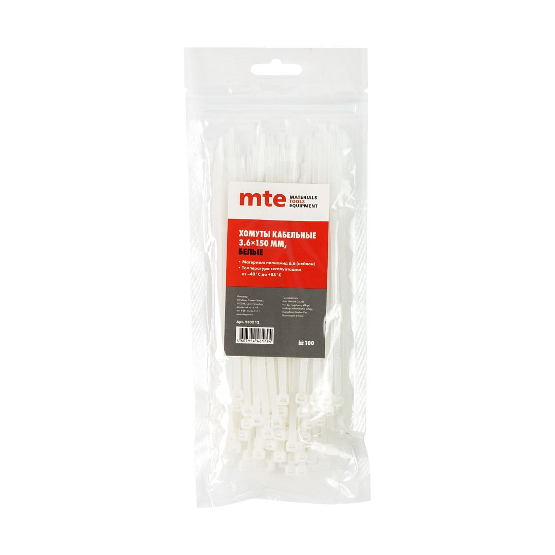 Хомут пластиковый 3,6x150 мм белый, mte