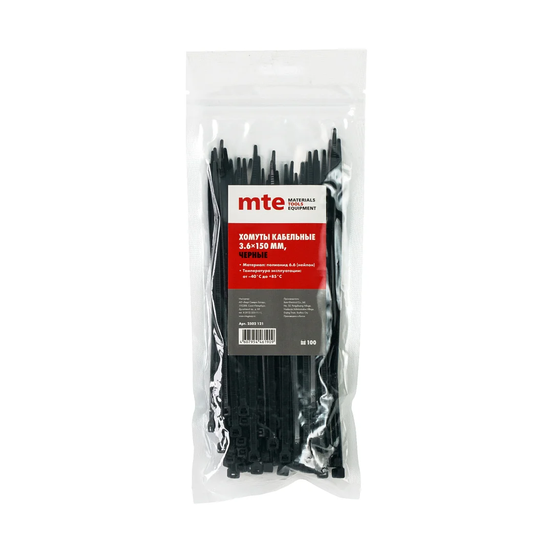 Хомут пластиковый 3,6x150 мм черный, mte