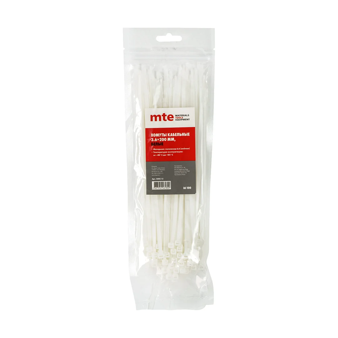 Хомут пластиковый 3,6x200 мм белый, mte