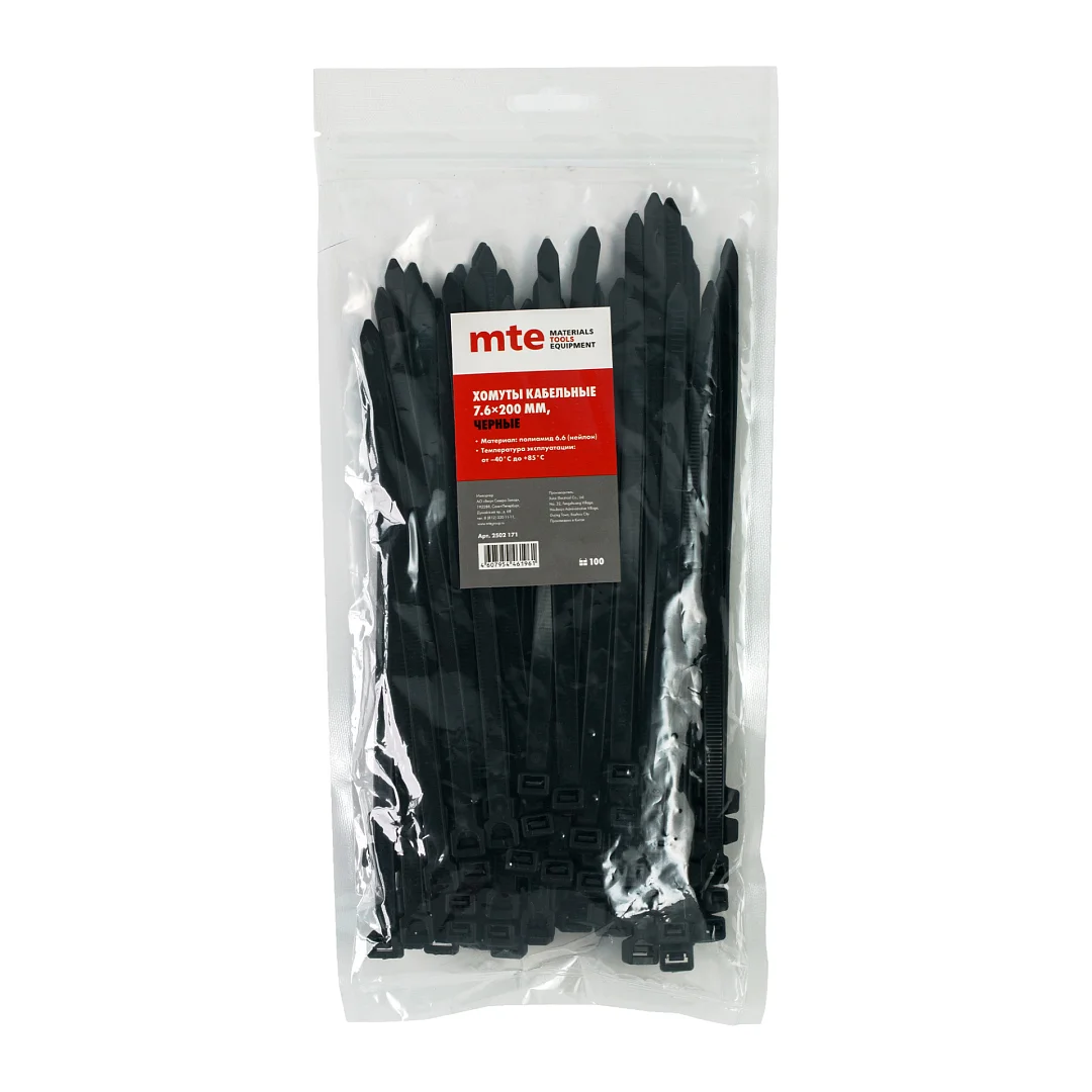 Нейлоновый хомут черного цвета, изготовленный из первичного полиамида 66, предназначен для крепления кабеля и проведения других монтажных работ как в помещении, так и на открытом воздухе