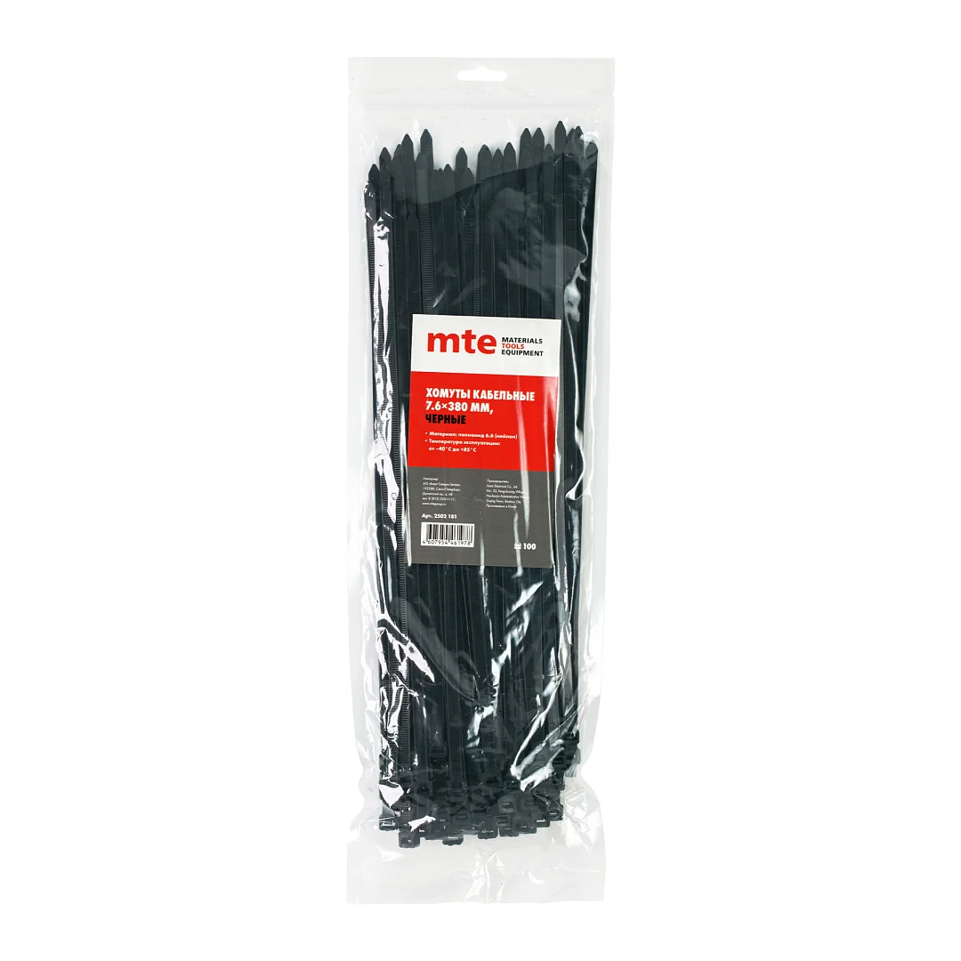 Хомут пластиковый 7,6x380 мм черный, mte