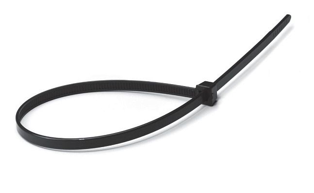 Нейлоновый хомут черного цвета предназначен для крепления кабеля и проведения других монтажных работ преимущественно на открытом воздухе.