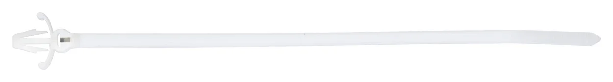 Нейлоновый хомут с металлическим язычком и пластиковой клипсой предназначен для крепления на панелях из листовой стали и др. материалов к плоским подложкам и обеспечивает надежную фиксацию кабельного жгута.