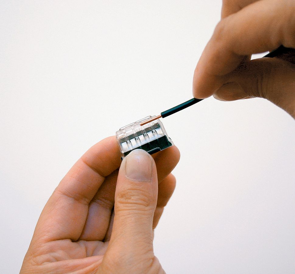 - Прозрачное смотровое окно для визуального контроля зажимного блока провода повышает безопасность при установке