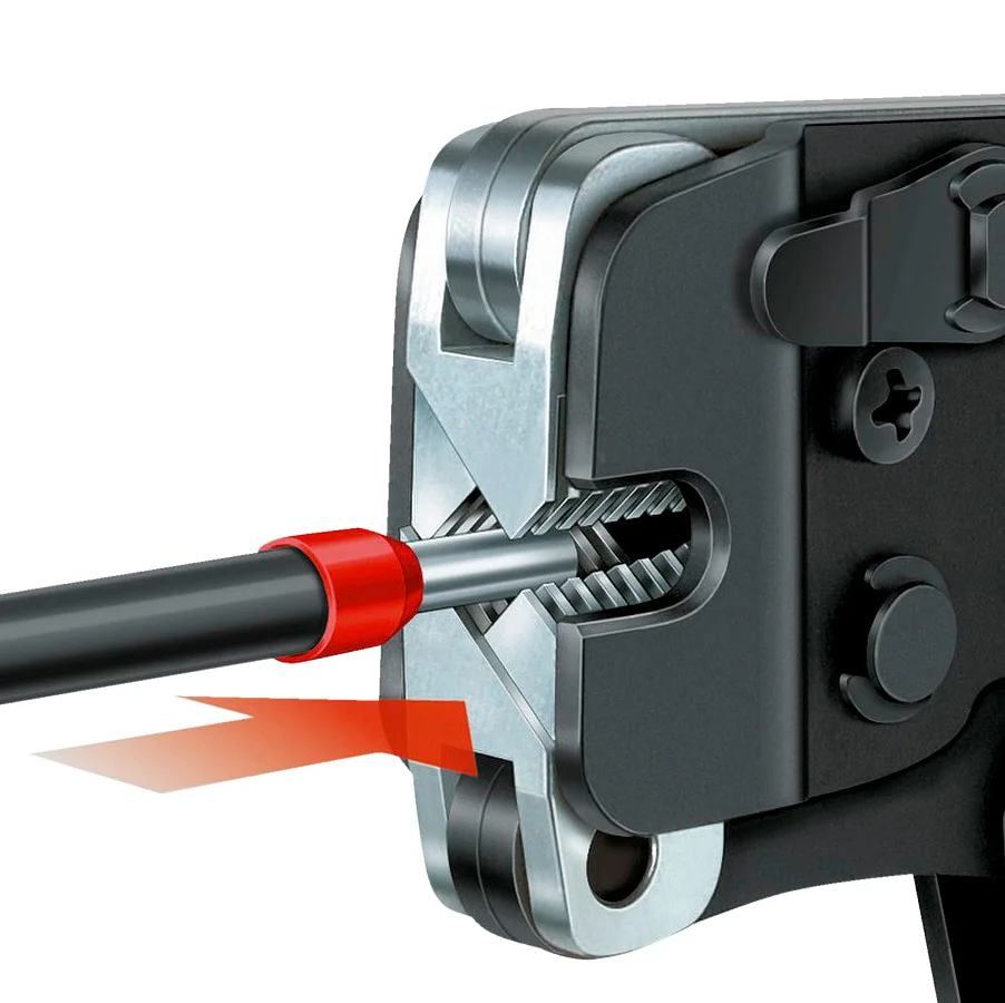Пресс-клещи 10/4F+S предназначены для опрессовки (квадратный профиль обжима) контактных гильз трубчатых наконечников в диапазоне сечений проводника 0,08-10 мм².