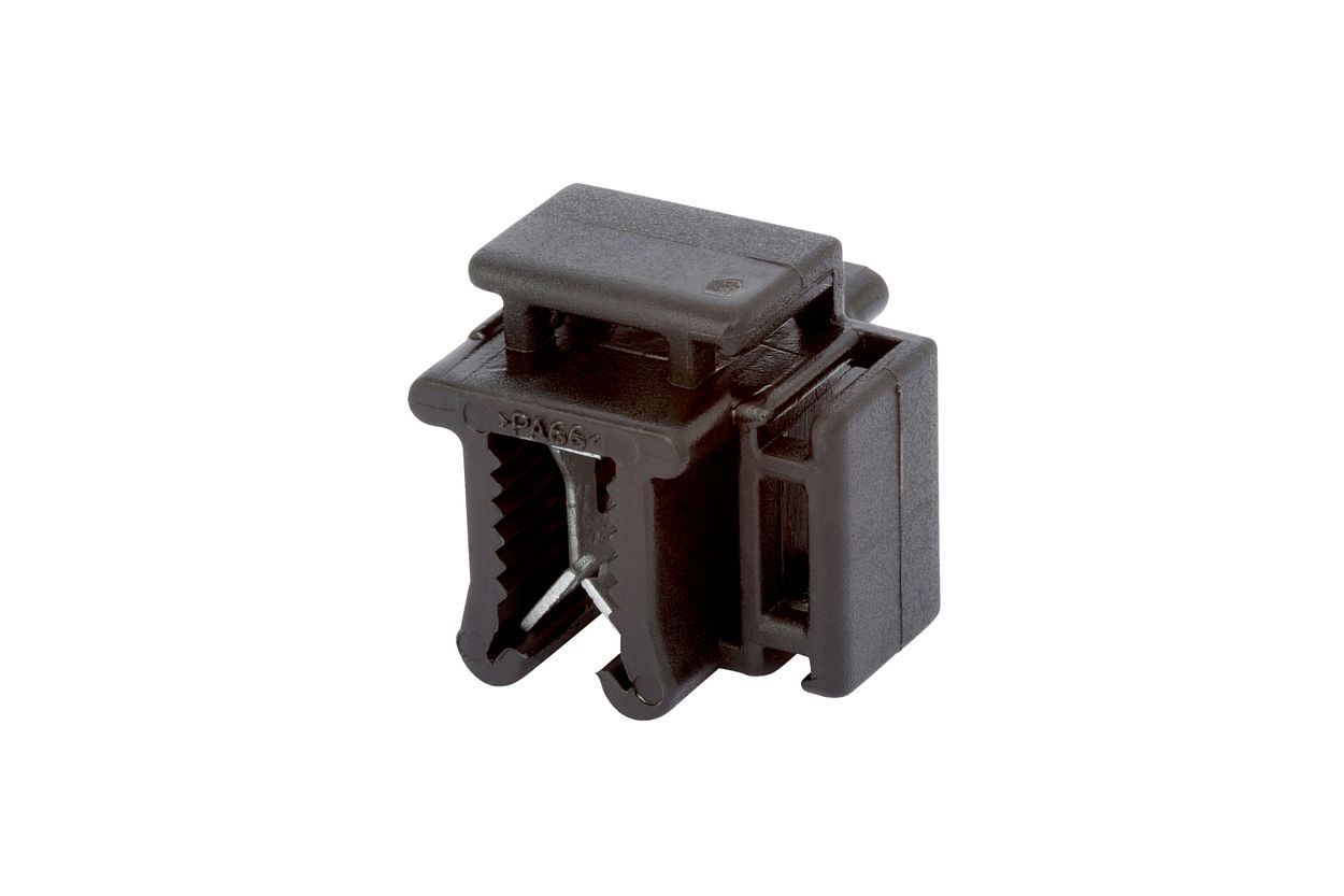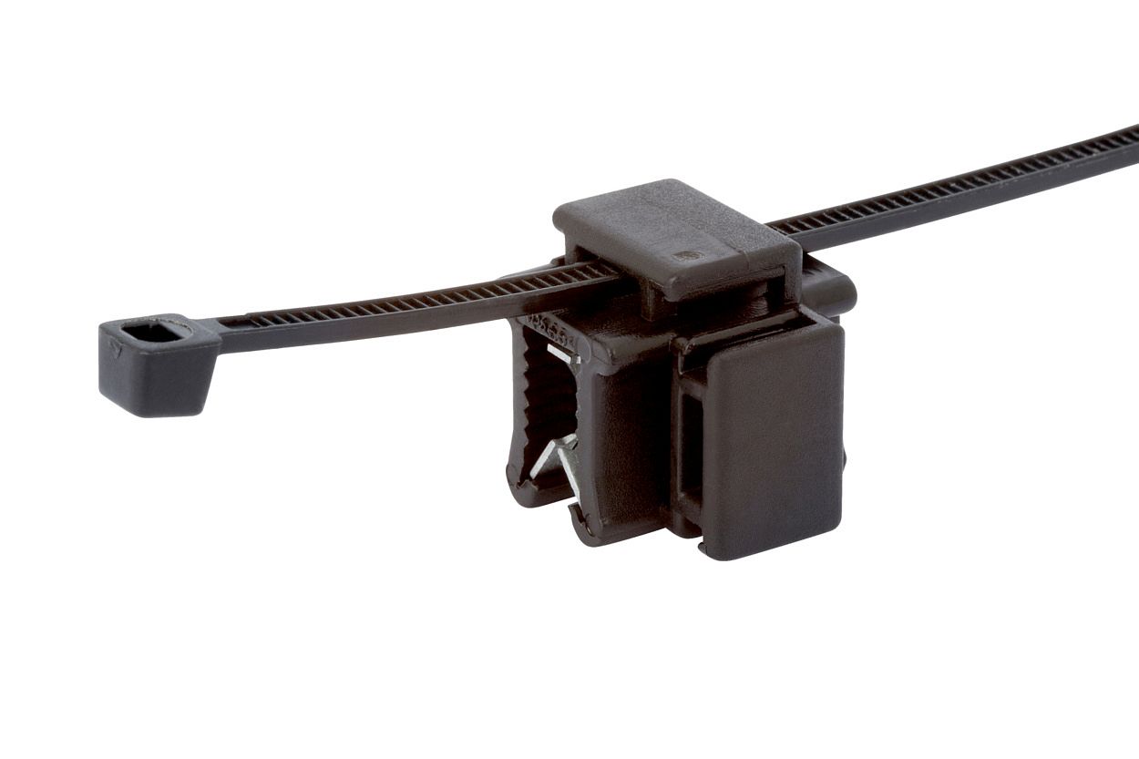 Клипсовый зажим для пластиковых хомутов - оптимальное решение в случае, если возможность/необходимость сверлить отверстие отсутствует, а клей неприменим из-за высоких температур.