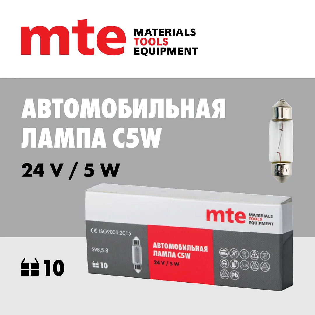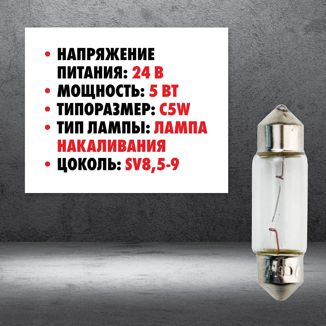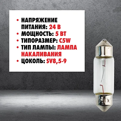 Автолампа C5W 24 В 5 Вт (SV8,5-8) L35MM mte