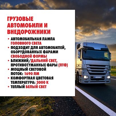 Грузовые автомобили и внедорожники: головной свет, ближний и дальний свет, противотуманные фары (ПТФ).