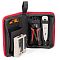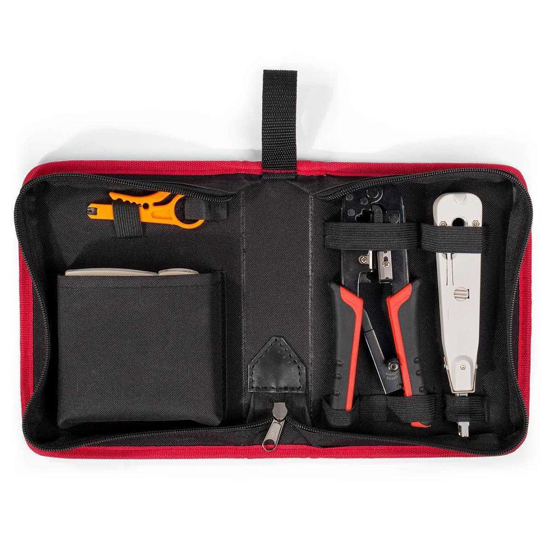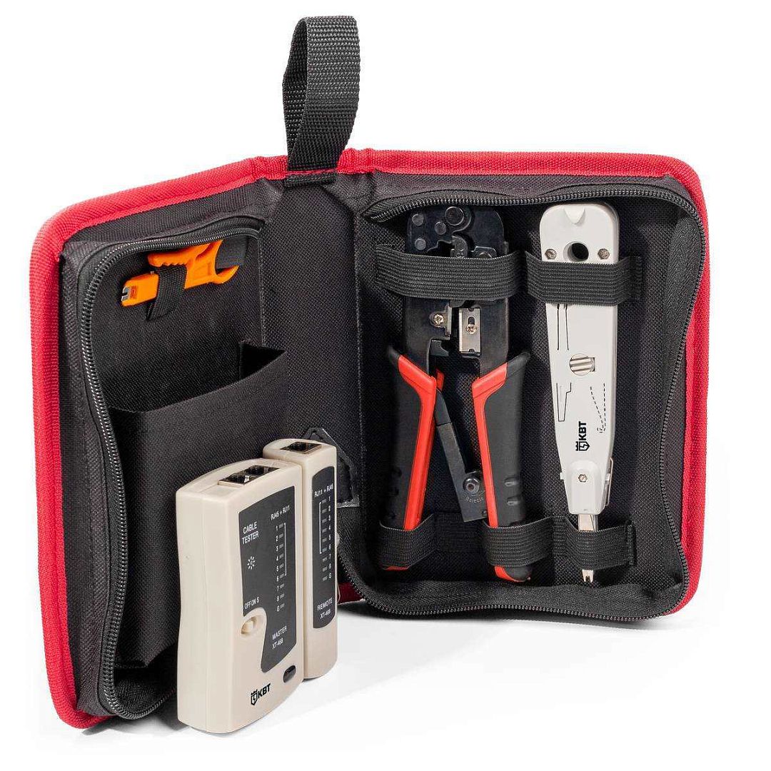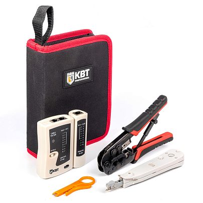 Набор предназначен для укладывания и подрезки проводов во врезные контакты на кроссах, патч-панелях, розетках и модулях, контактов 110 и KRONE, обжима разъемов 8Р8С (RJ-45), 6Р6С (RJ-12), 6P4C (RJ-11), 6Р2С, тестирования витой пары и телефонных линий.