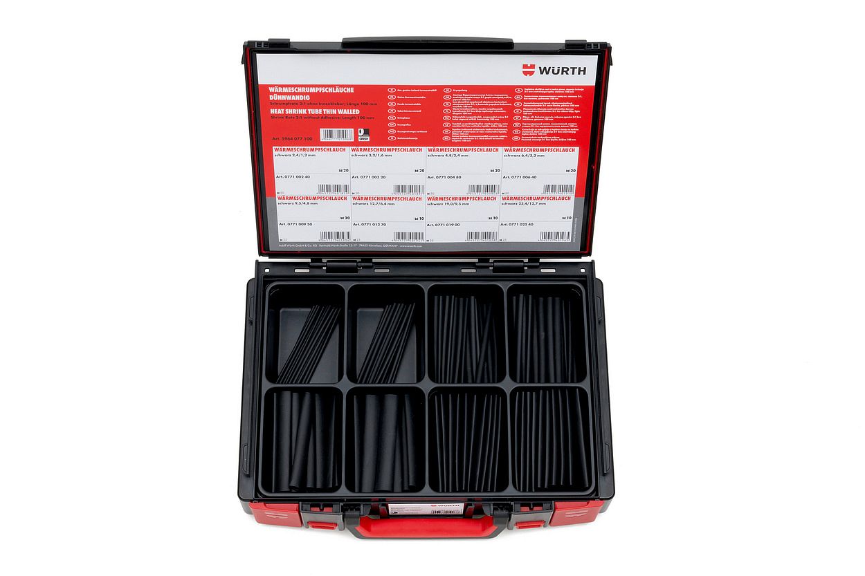 Набор тонкостенных термоусаживаемых трубок с коэффициентом усадки 2:1 в кейсе SYSTEM.