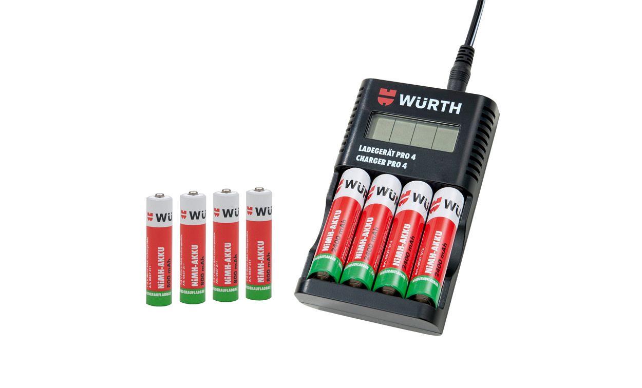 Комплект зарядного устройства Pro 4 с батарейками 4хAAA, 4xAA, Wurth