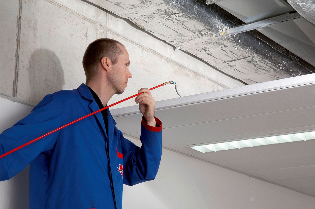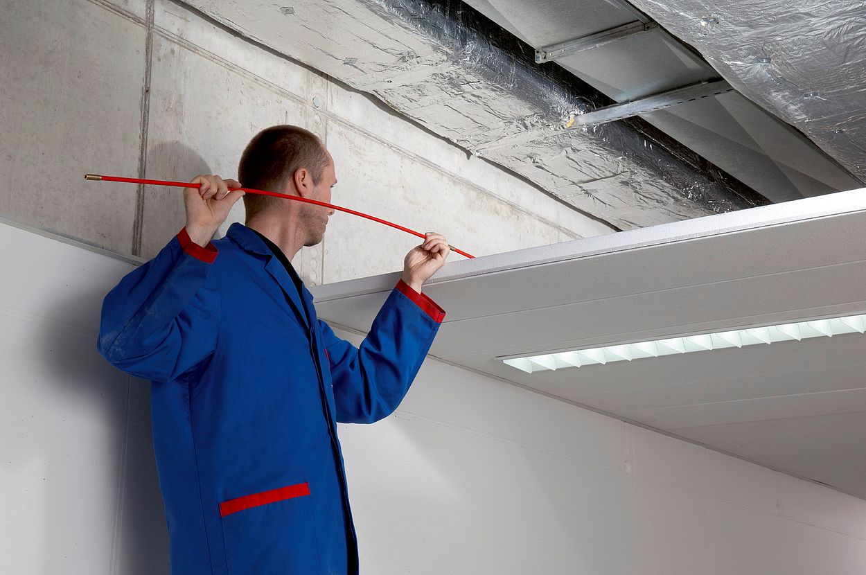 Подвесные потолки, установки под полом, гипсокартон, кабельные каналы, кабельные шахты, в которых нет доступных кабельных направляющих или которые являются слишком гибкими для стандартных систем протяжки кабелей, доступных на рынке.