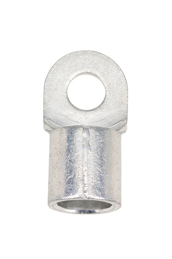 Силовой неизолированный наконечник с продольной канавкой на внешней стороне втулки предназначен для оконцевания опрессовкой (точечный обжим) медных кабелей и проводов.