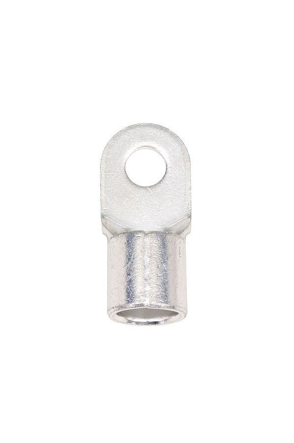 Силовой неизолированный наконечник с продольной канавкой на внешней стороне втулки предназначен для оконцевания опрессовкой (точечный обжим) медных кабелей и проводов.