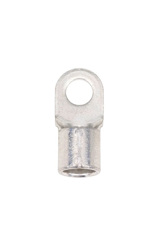 Силовой неизолированный наконечник с продольной канавкой на внешней стороне втулки предназначен для оконцевания опрессовкой (точечный обжим) медных кабелей и проводов.
