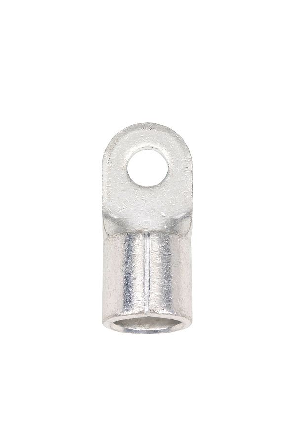 Силовой неизолированный наконечник с продольной канавкой на внешней стороне втулки предназначен для оконцевания опрессовкой (точечный обжим) медных кабелей и проводов.