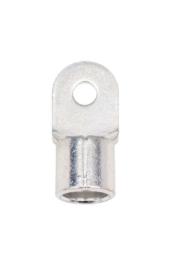 Силовой неизолированный наконечник с продольной канавкой на внешней стороне втулки предназначен для оконцевания опрессовкой (точечный обжим) медных кабелей и проводов.