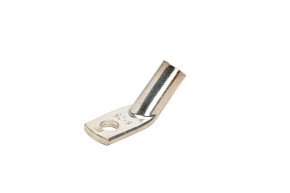 Силовой неизолированный угловой наконечник с углом 45° между осью гильзы и плоскостью контактной части предназначен для оконцевания опрессовкой (шестигранный обжим) жил медных кабелей и проводов, особенно в условиях весьма ограниченного пространства для электромонтажа.