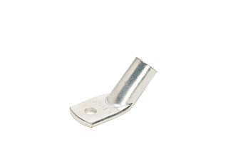 Силовой неизолированный угловой наконечник с углом 45° между осью гильзы и плоскостью контактной части предназначен для оконцевания опрессовкой (шестигранный обжим) жил медных кабелей и проводов, особенно в условиях весьма ограниченного пространства для электромонтажа.