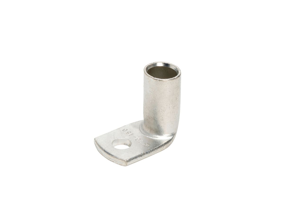 Силовой неизолированный угловой наконечник с углом 90° между осью гильзы и плоскостью контактной части предназначен для оконцевания опрессовкой (шестигранный обжим) жил медных кабелей и проводов, особенно в условиях весьма ограниченного пространства для электромонтажа.