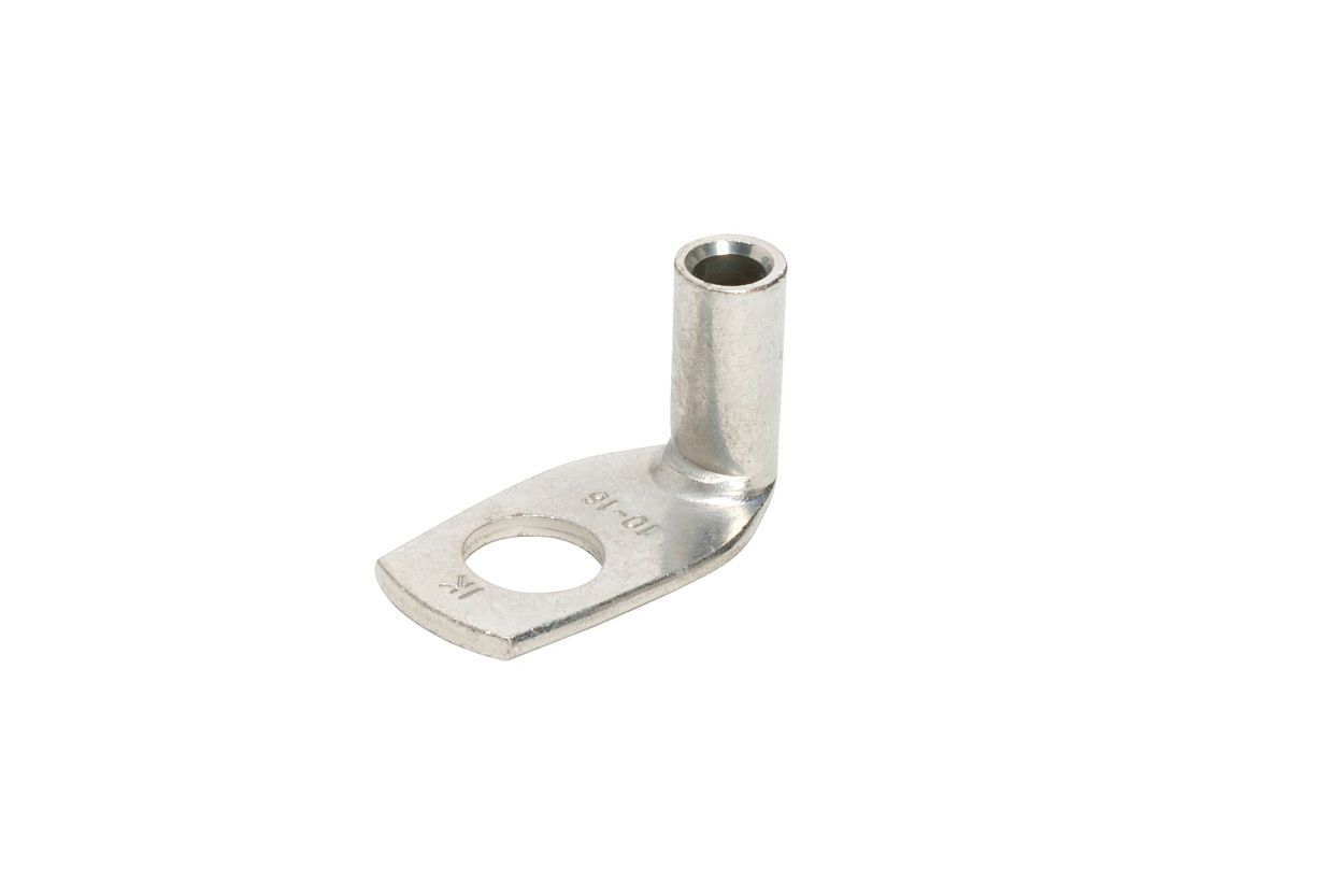 Силовой неизолированный угловой наконечник с углом 90° между осью гильзы и плоскостью контактной части предназначен для оконцевания опрессовкой (шестигранный обжим) жил медных кабелей и проводов, особенно в условиях весьма ограниченного пространства для электромонтажа.
