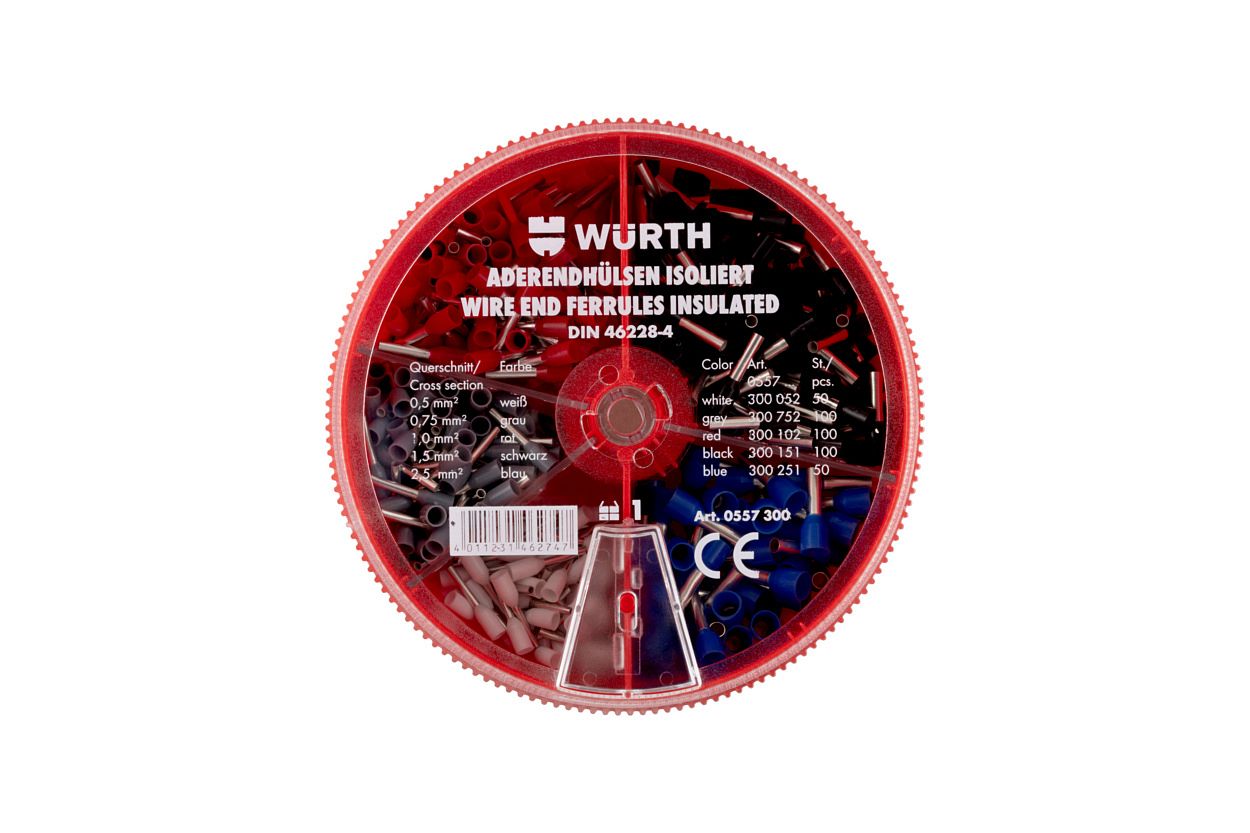 Набор, выполненный в виде пластикового кейса, включает изолированные наконечники наиболее востребованных типов и размеров. Прозрачная вращающаяся крышка с окном подачи позволяет быстро выбрать наконечник нужного размера, имеет бортики и может использоваться в процессе монтажа как рабочая поверхность для временного хранения наконечников. При небольшом наклоне кейса наконечники легко возвращаются в нужное отделение. Цветовая маркировка изолирующих манжет облегчает идентификацию и выбор необходимого сечения. Благодаря компактным размерам кейс легко поместится в кармане или в рабочей сумке монтажника. Форма крышки позволяет ставить кейсы один на другой. Кейс также подходит для хранения различных мелких деталей.