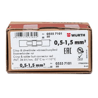 Соединитель термоусадочный под обжим и пайку, красный, Wurth