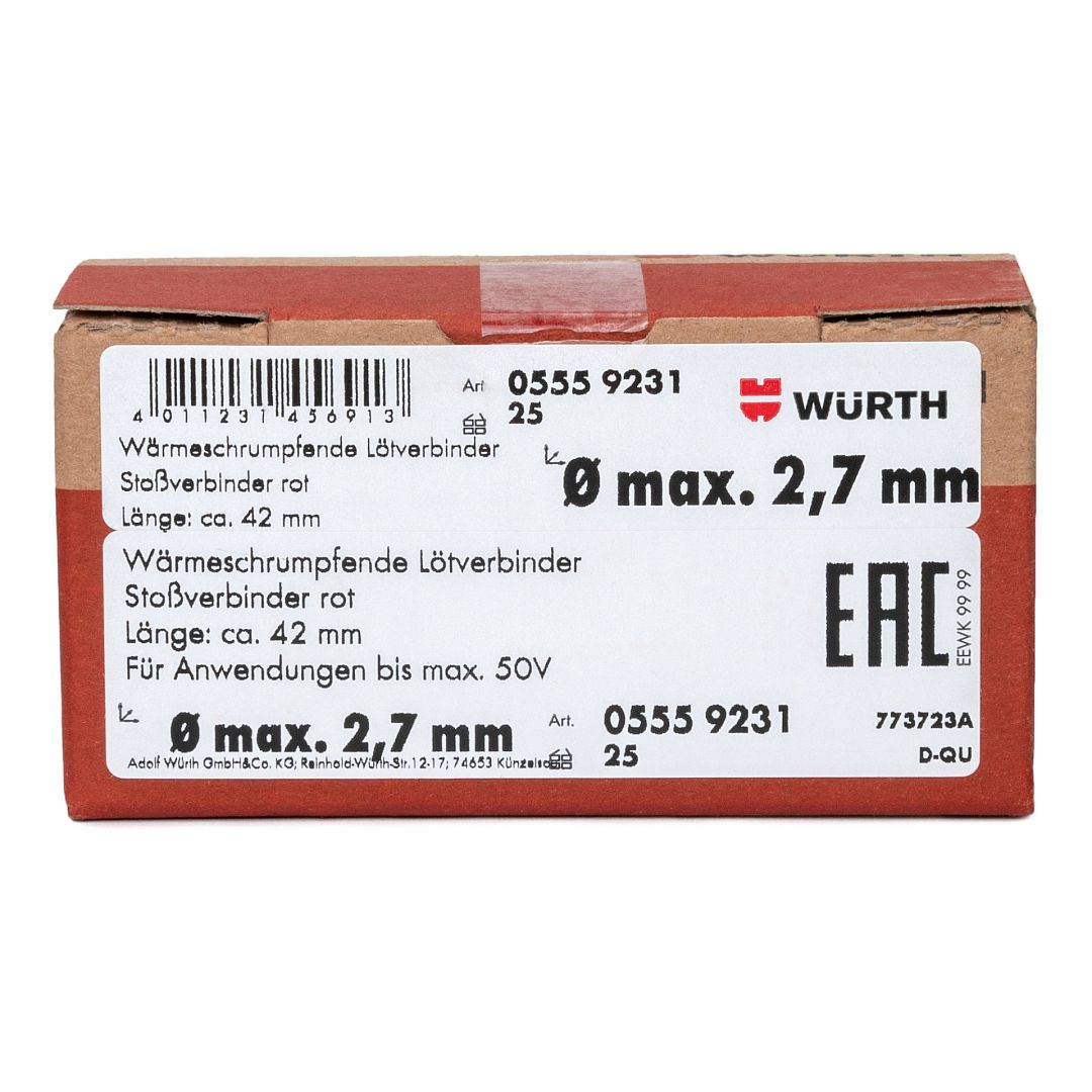Соединитель термоусадочный плавкий диаметр пучка 2,7 мм красный Wurth