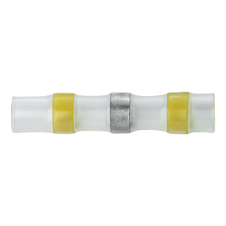 Соединитель состоит из прозрачной термоусадочной трубки увеличенной толщины, кольца из оловянного припоя с флюсом и цветных колец термоклея в торцевых частях.