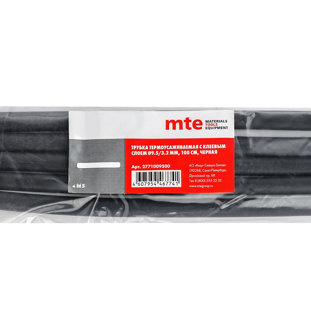 ТРУБКА ТЕРМОУС КЛЕЙ 9.5/3.2ММ L=100СМ ЧЕРНАЯ