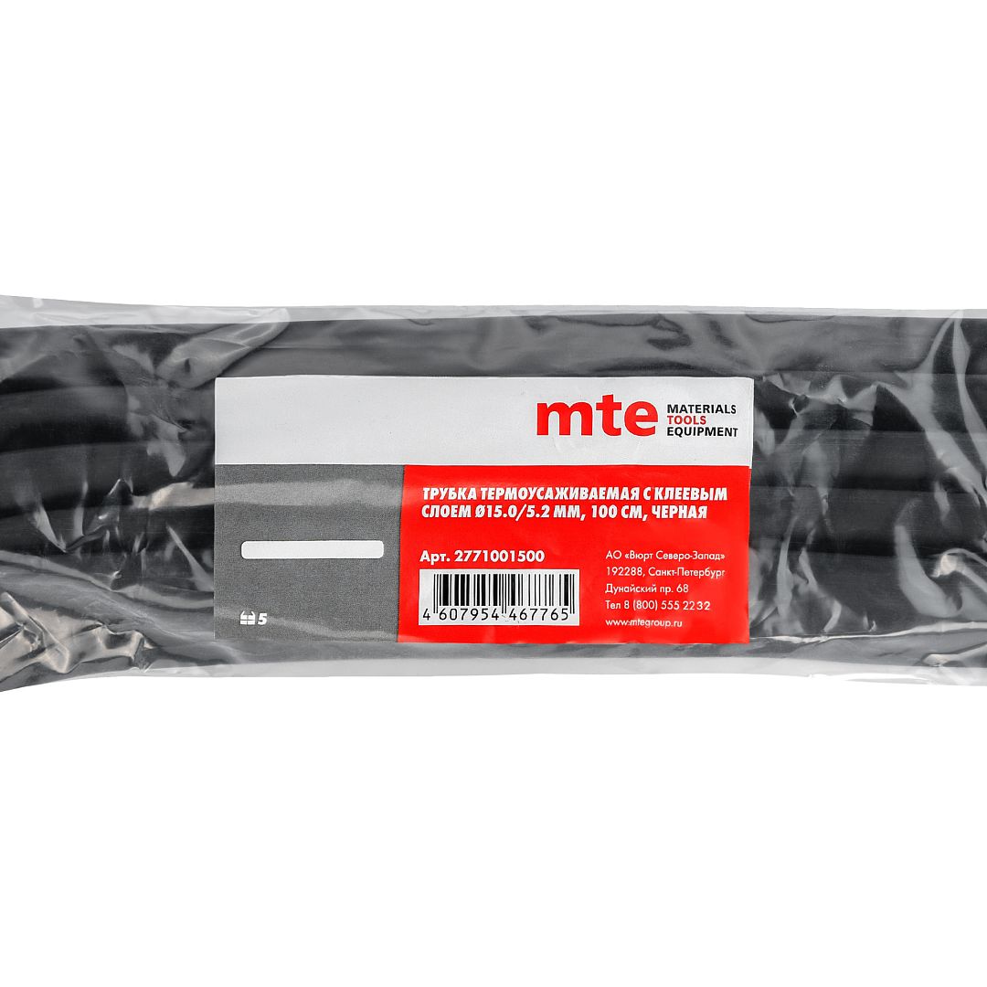 ТРУБКА ТЕРМОУС КЛЕЙ15.0/5.2ММ L=100СМ ЧЕРНАЯ