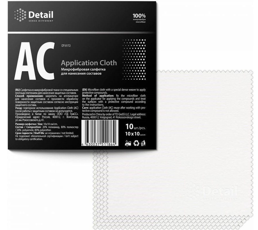 Микрофибровый аппликатор для нанесения составов. Подходит для работы с ЛКП, стеклом и кожей. Безопасен для любых видов поверхностей.