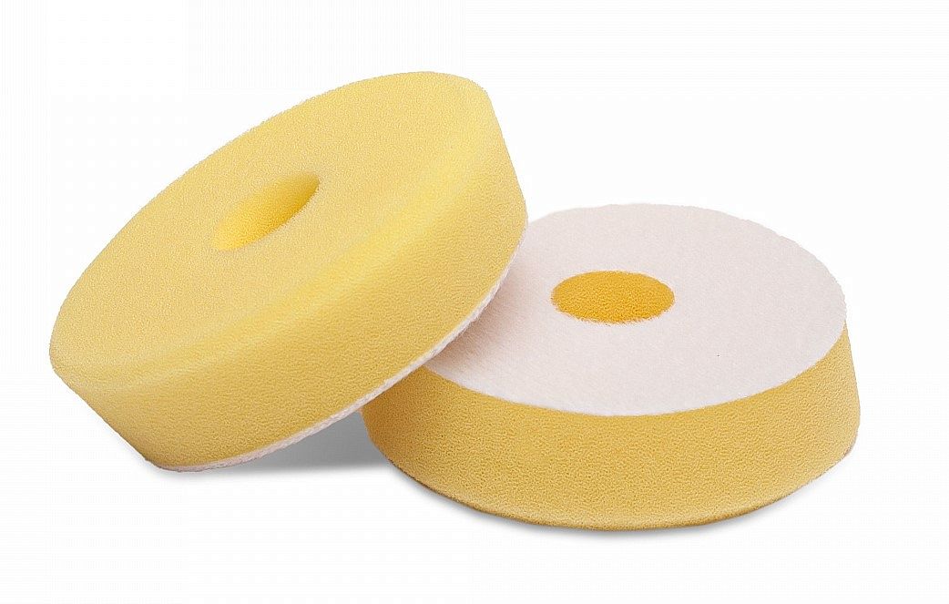 Желтый поролоновый полировальник для эксцентриковых машинок. Имеет сквозное отверстие для охлаждения. Предназначен для средней и финишной полировки.