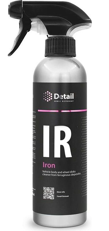 Очиститель кузова и колесных дисков от металлических вкраплений. Уникальная ph-сбалансированная формула состава безопасна для различных поверхностей автомобиля. Iron (IR) эффективно справляется с дорожным налетом на ЛКП, стёклах и зеркалах. Состав разработан специально для очистки колесных дисков. Iron (IR) незаменим для удаления въевшейся тормозной пыли на дисках, которую невозможно полностью очистить обычными средствами. Iron (IR) расщепляет загрязнение за несколько минут, по завершению приобретая малиновый (марганцевый) оттенок.