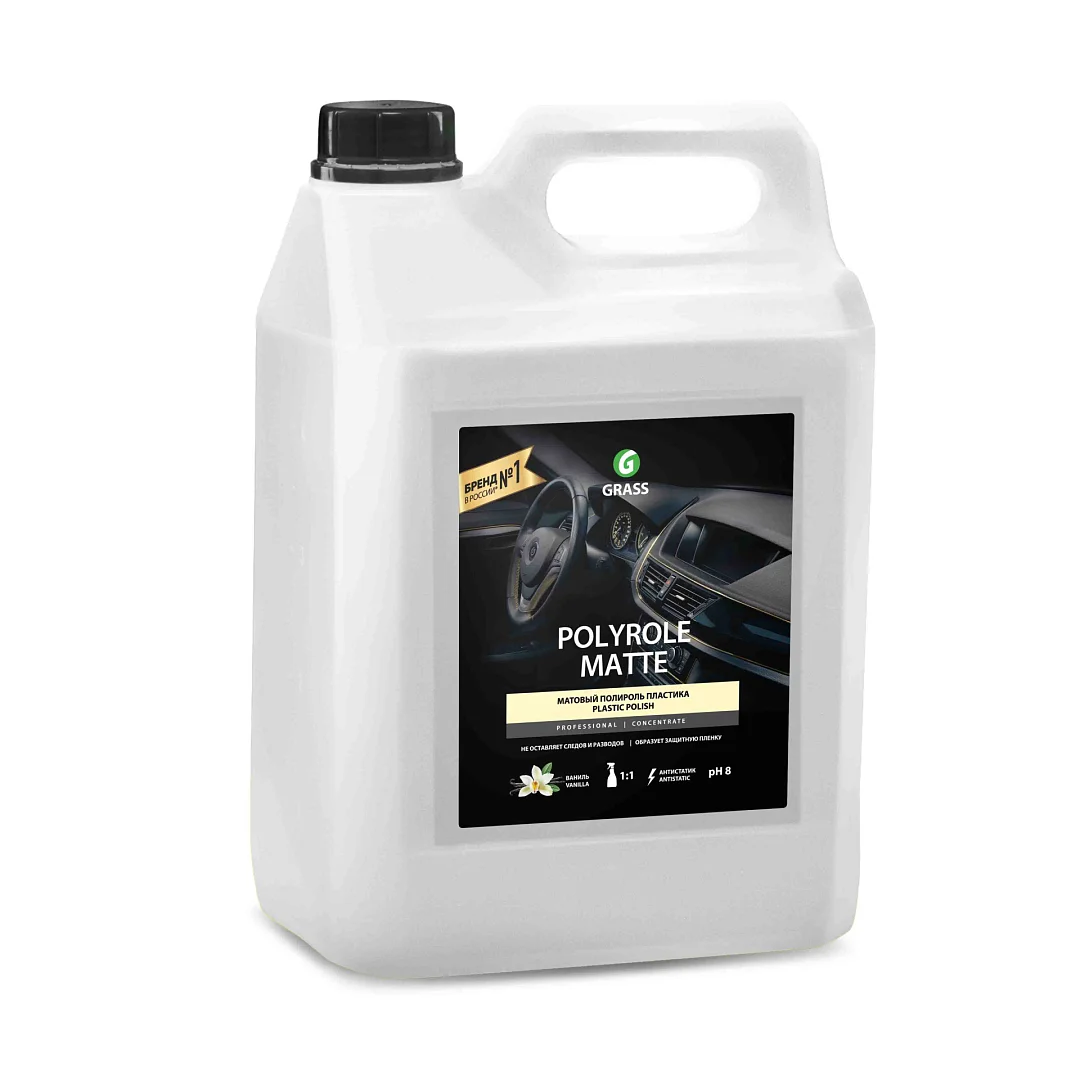 Матовый полироль для обработки приборных панелей, неокрашенных бамперов, покрышек, для очистки и полировки изделий из кожи, дерева, винила, пластика и резины. Не остав- ляет жирных пятен, препятствует оседанию пыли придает матовый блеск, обладает приятным ароматом ванили. Применяется в готовом виде или разводится в пропорции 1:1 с водой.