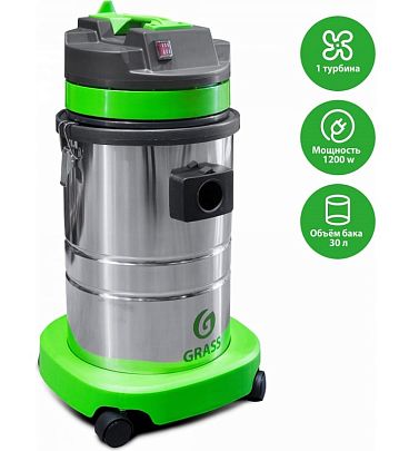 Профессиональный пылесос для сухой и влажной уборки с баком из нерж. стали. Бесшумный двигатель с большим сроком службы.