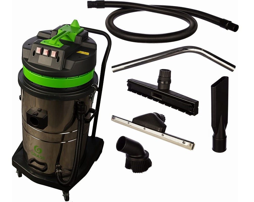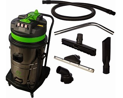 Профессиональный пылесос высокой производительности для сухой и влажной уборки с баком из нерж. стали. Бесшумный двигатель с большим сроком службы.