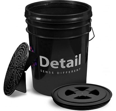 Черное ведро для мойки автомобиля с пескоотделителем. Идеально подходит для двухведерного метода мойки автомобиля. Пескоотделитель позволяет удержать грязь на дне ведра и удобно отжимать губку. Крышка изготовлена из прочного пластика.