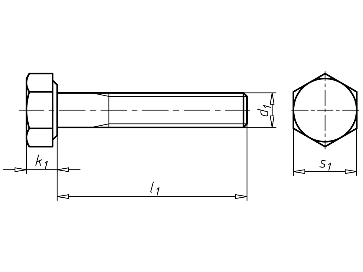 Болт DIN 931 с шестигранной головкой неполная резьба М12х90 нержавеющий А2 70