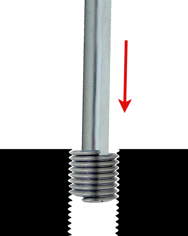 Стандартный диапазон применения до M12. При больших размерах поводок проволочной резьбовой втулки можно отломать острогубцами.