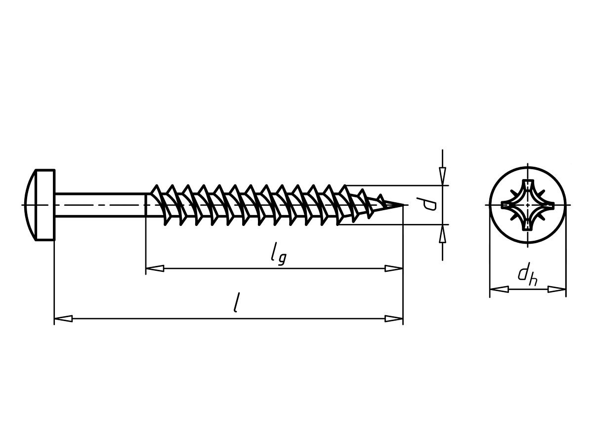 Цилиндрическая скругленная головка, с хвостовиком |