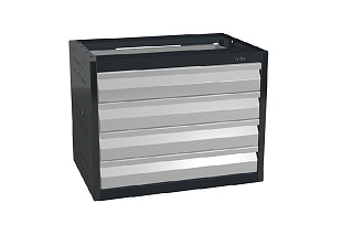 Со встроенной защелкой. Высота ящиков 90 и 180 мм. Возможные комбинации: 4 ящика по 90 мм; 2 ящика по 180 мм; 2 ящика по 90 мм и один 180 мм. Габаритные размеры: 556х430х380 мм. Вес: 20-25 кг. Макс. Нагрузка на ящик 40 кг.