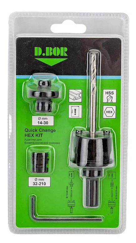 Адаптер Quick Change HEX 11 мм для биметаллических коронок от 14 до 210 мм (комплект)