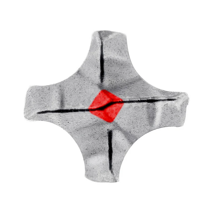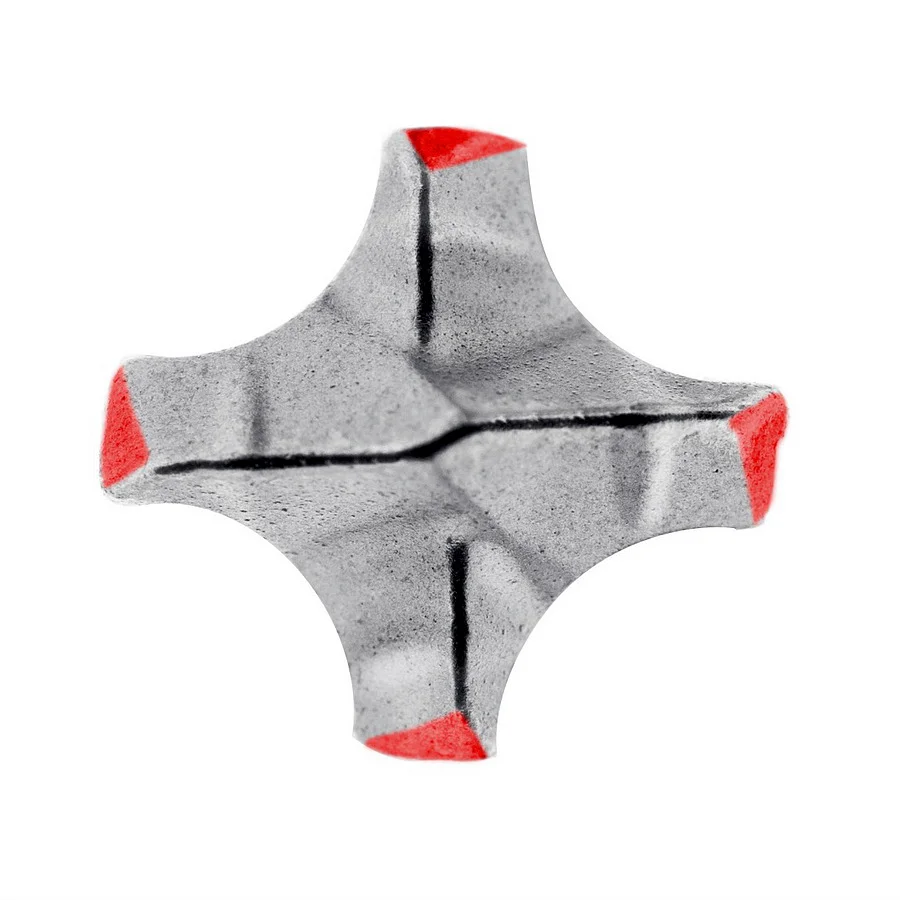 Симметричная геометрия режущих кромок 4 x 90° (до Ø 10 мм в случае твердосплавной головки) предотвращает заедание или увод бура при столкновении, например, с арматурой.